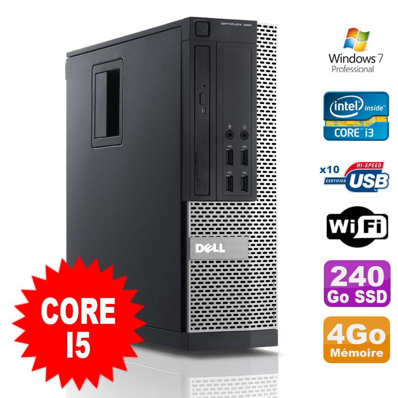 PC Dell Optiplex 990 SFF I5-2400 3.1GHz 4Go Disque 240Go SSD DVD Wifi W7