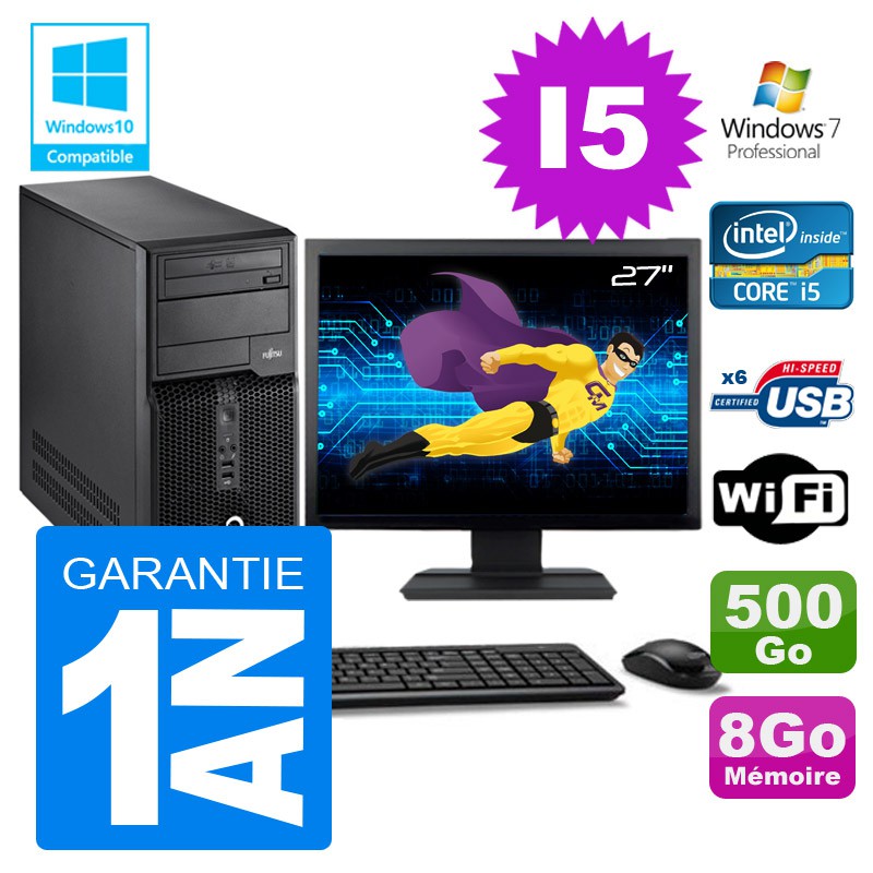 PC Tour Fujitsu Esprimo P400 I5-2400 RAM 8Go Disque 500Go Wifi W7 Ecran 27"