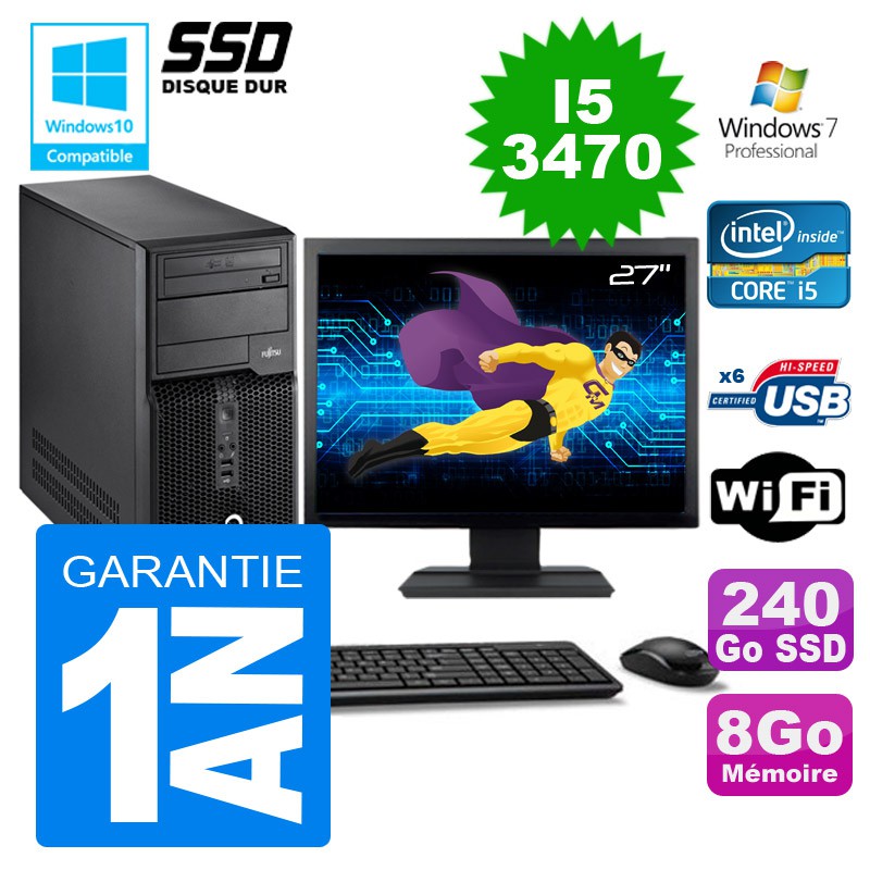 PC Tour Fujitsu Esprimo P400 I5-3470 RAM 8Go Disque 240 Go SSD Wifi W7 Ecran 27"