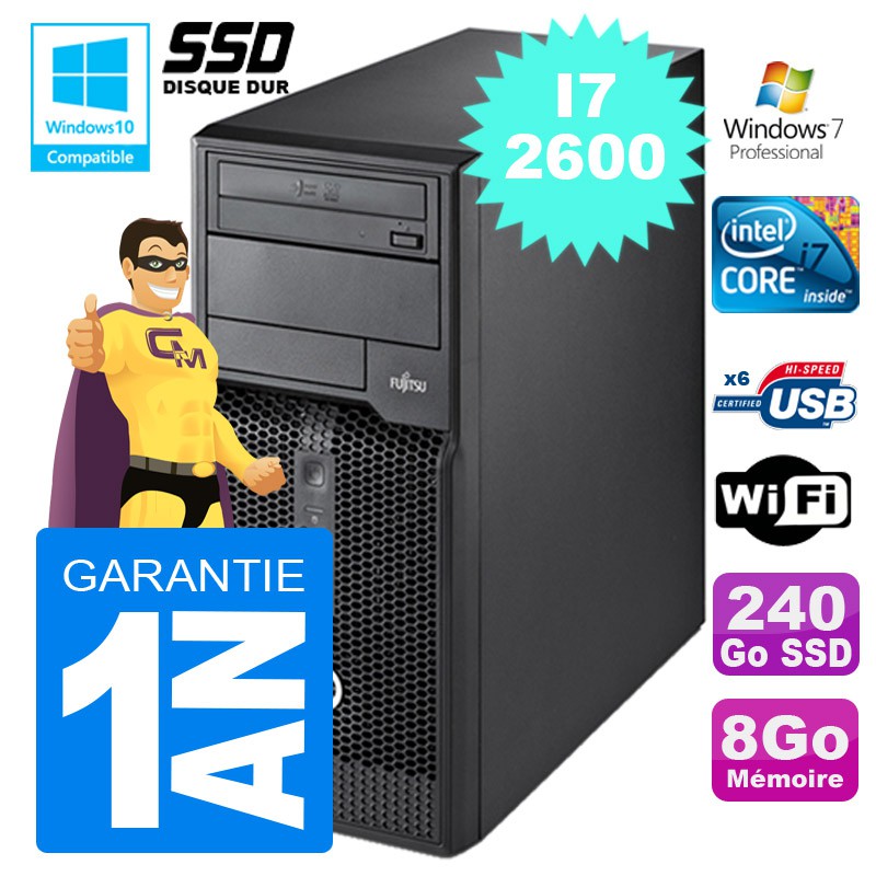 PC Tour Fujitsu Esprimo P400 - Intel-Core I7-2600 3.4Ghz (8 Mo de cache) - 8 Go DDR3 - Disque Dur 240 Go SSD - Graveur DVD - Clé WIFI USB - Windows 7 Pro - Garantie = 1 an.
