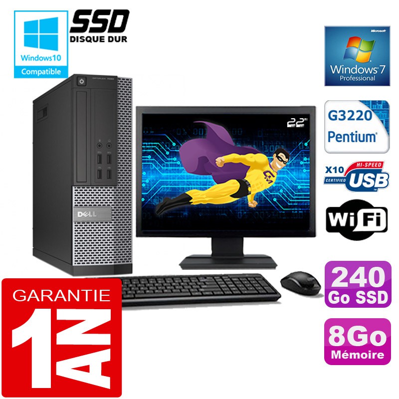 PC DELL 7020 SFF - Intel Pentium G3220 3.0GHz (3 Mo de cache) - 8 Go DDR3 - Disque Dur 240 Go SSD - Graveur DVD - Clé WIFI USB - Windows 7 Pro - Pack Clavier + Souris + Ecran 22" ( Marque et modèle selon arrivages) - Garantie = 1 an.