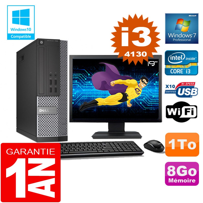 PC DELL 7020 SFF Core I3-4130 Ram 8Go Disque 1 To Wifi W7 Ecran 19"