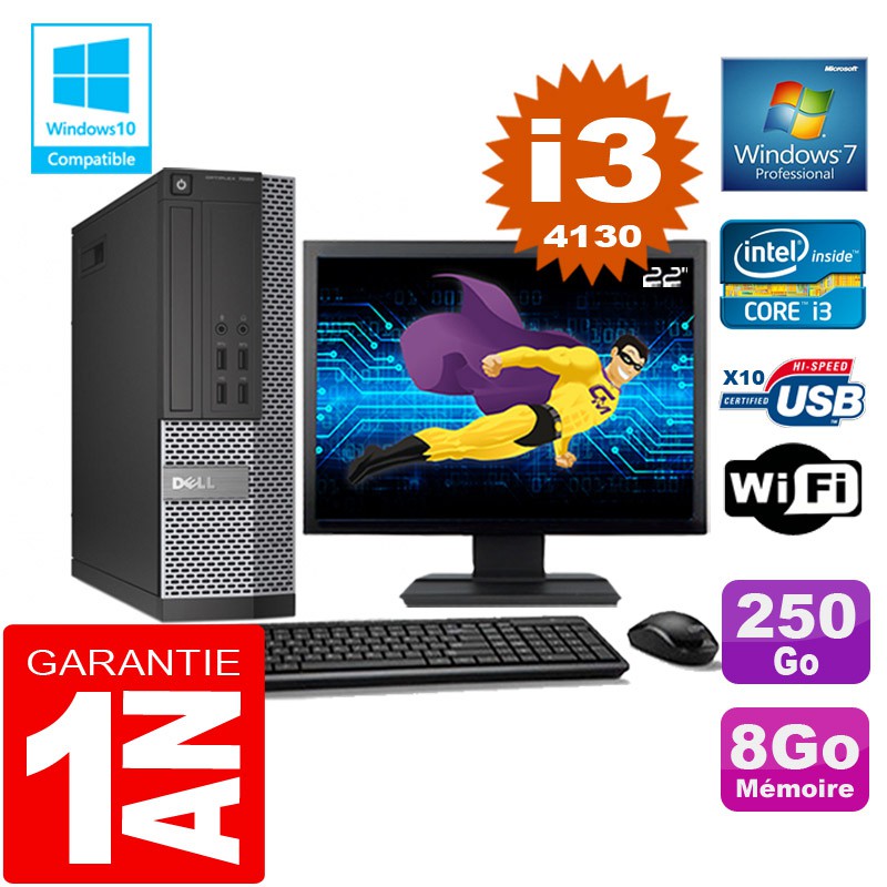 PC DELL 7020 SFF Core I3-4130 Ram 8Go Disque 250 Go Wifi W7 Ecran 22"