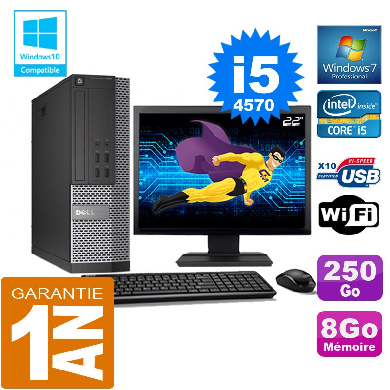 PC DELL 7020 SFF Core I5-4570 Ram 8Go Disque 250 Go Wifi W7 Ecran 22"