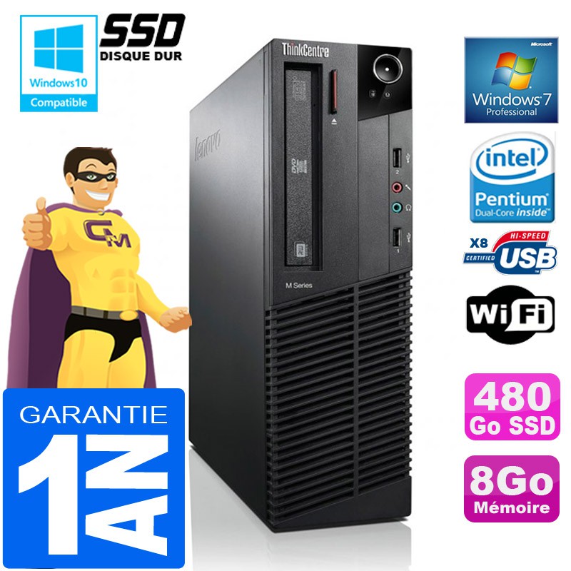 PC Lenovo M92p SFF -Intel Pentium G630 2,7Ghz (3 Mo de cache) - 8Go DDR3 - Disque Dur 480 Go SSD - Graveur DVD - Clé WIFI USB - Windows 7 Pro - Garantie = 1 an.
