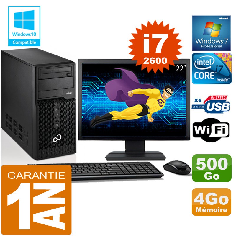PC Tour Fujitsu Esprimo P400 I7-2600 RAM 4Go Disque 500 Go Wifi W7 Ecran 22"