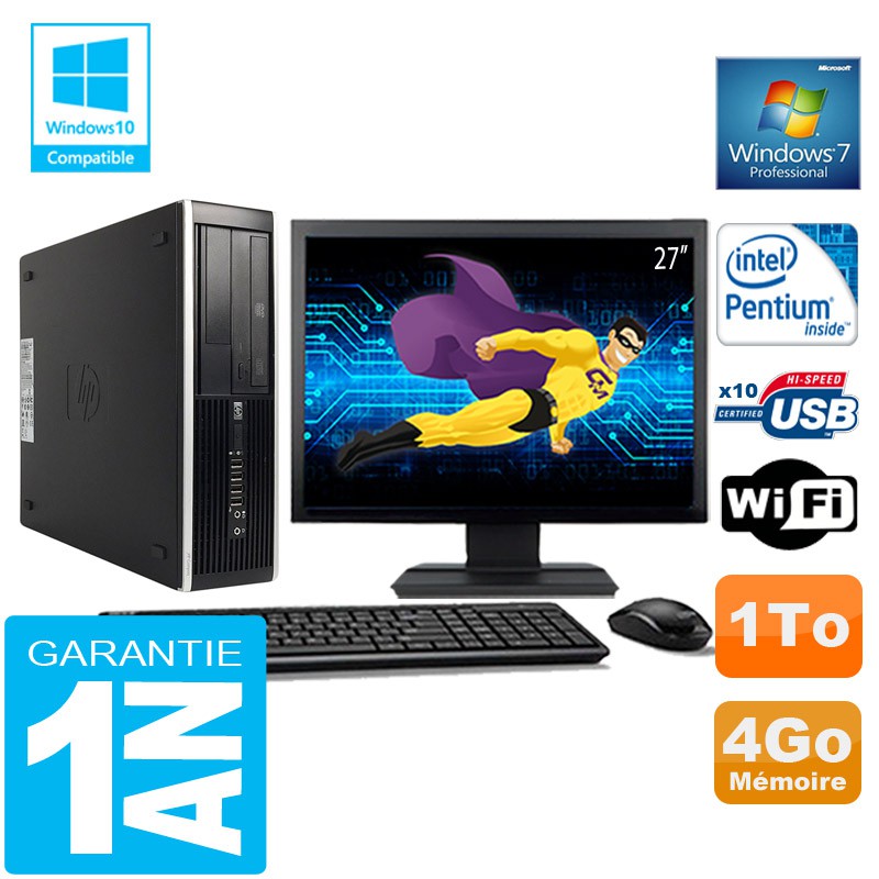 PC HP Compaq 8300 SFF Intel G850 Ram 4Go Disque 1 To Wifi W7 Ecran 27"