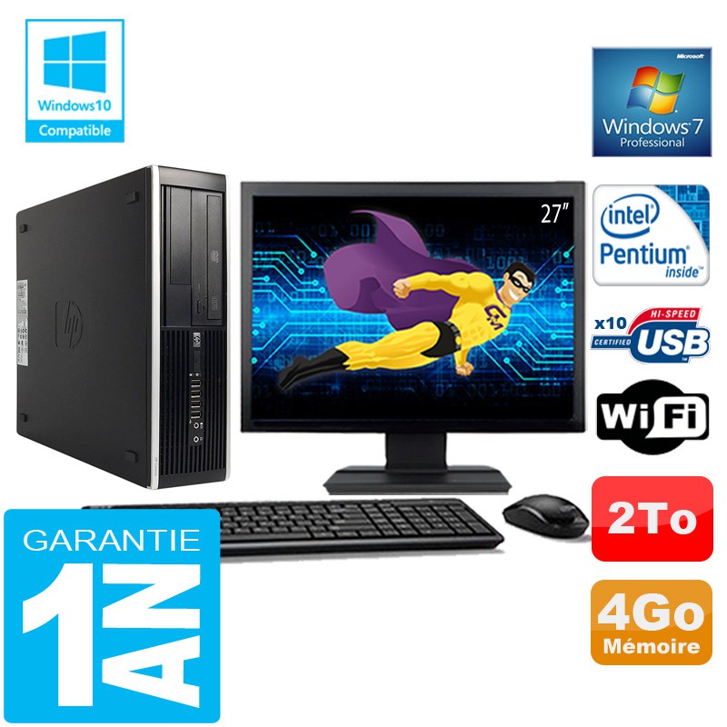 PC HP Compaq 8300 SFF Intel G850 Ram 4Go Disque 2 To Wifi W7 Ecran 27"