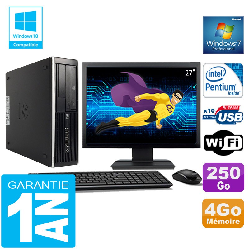 PC HP Compaq 8300 SFF Intel G850 Ram 4Go Disque 240 Go SSD Wifi W7 Ecran 27"