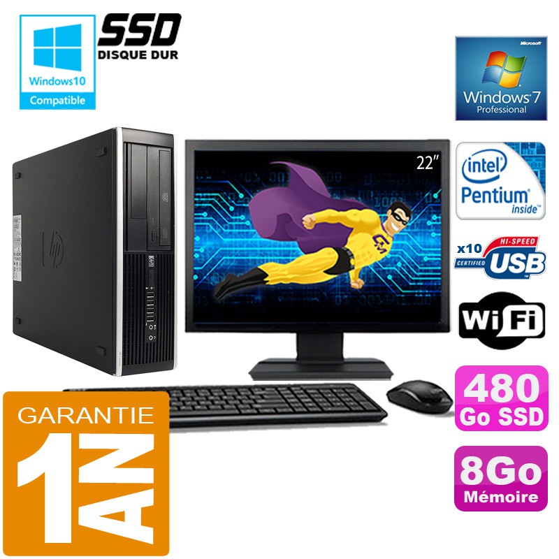 PC HP Compaq 8300 SFF Intel G850 Ram 8Go Disque 480 Go SSD Wifi W7 Ecran 22"