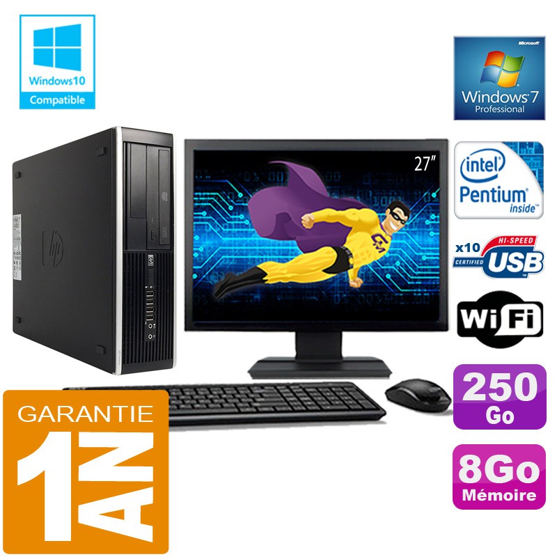 PC HP Compaq 8300 SFF Intel G850 Ram 8Go Disque 250 Go Wifi W7 Ecran 27"