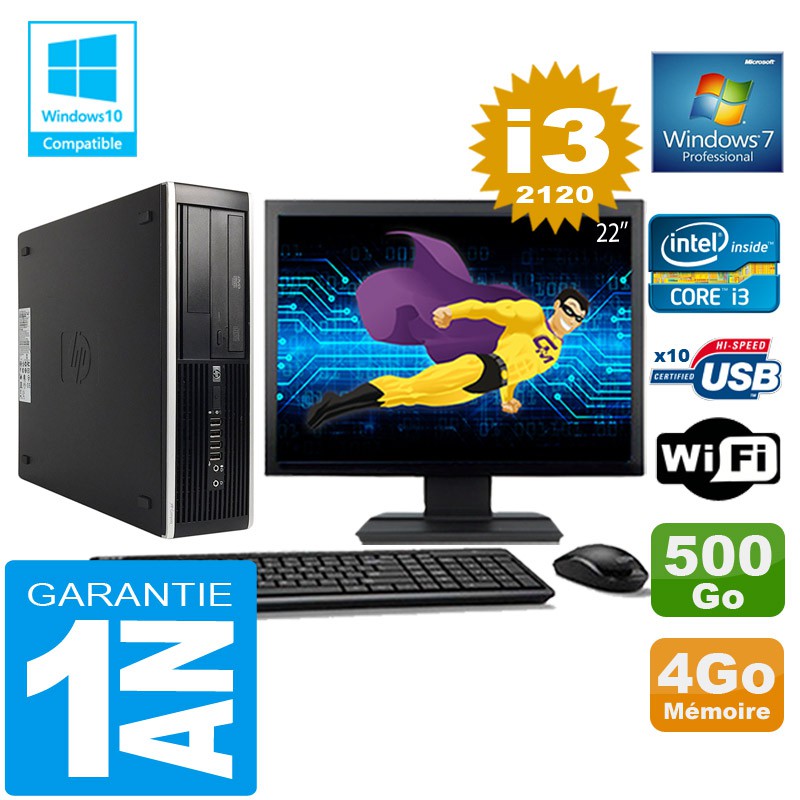 PC HP Compaq 8300 SFF Core I3-2120 Ram 4Go Disque 500 Go Wifi W7 Ecran 22"