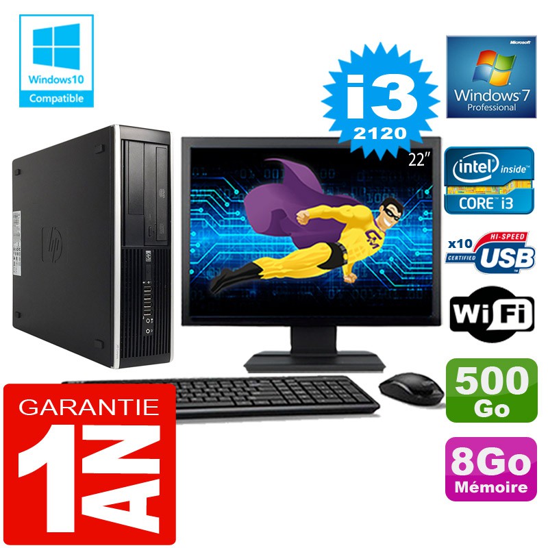 PC HP Compaq 8300 SFF Core I3-2120 Ram 8Go Disque 500 Go Wifi W7 Ecran 22"