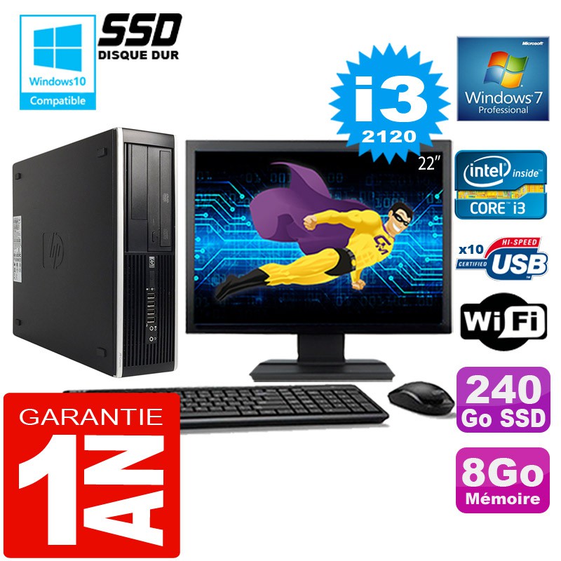 PC HP Compaq 8300 SFF Core I3-2120 Ram 8Go Disque 240 Go SSD Wifi W7 Ecran 22"