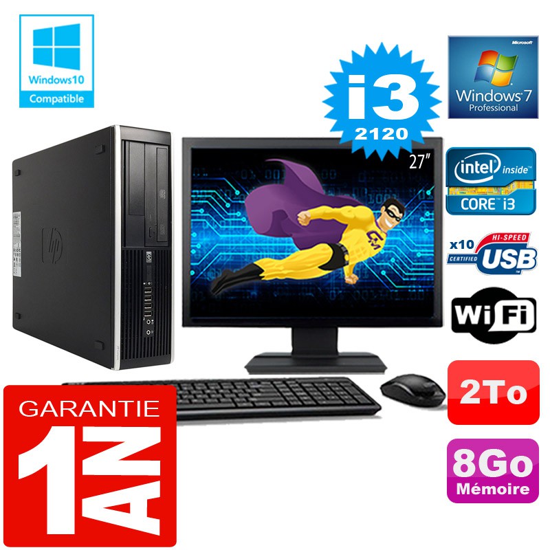 PC HP Compaq 8300 SFF Core I3-2120 Ram 8Go Disque 2 To Wifi W7 Ecran 27"