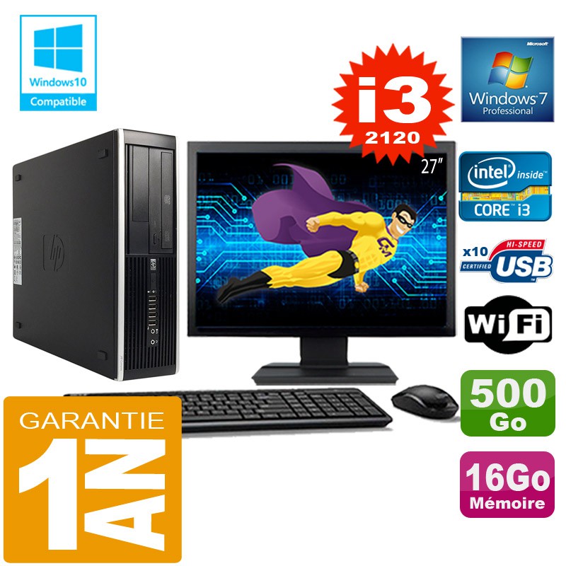 PC HP Compaq 8300 SFF Core I3-2120 Ram 16Go Disque 500 Go Wifi W7 Ecran 27"