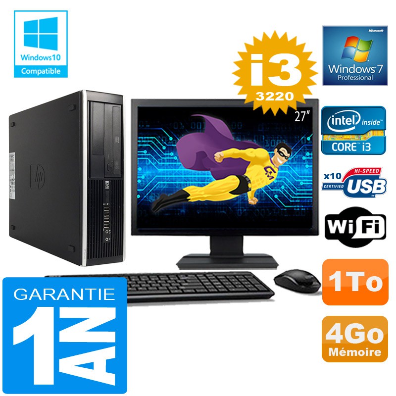 PC HP Compaq 8300 SFF Core I3-3220 Ram 4Go Disque 1 To Wifi W7 Ecran 27"