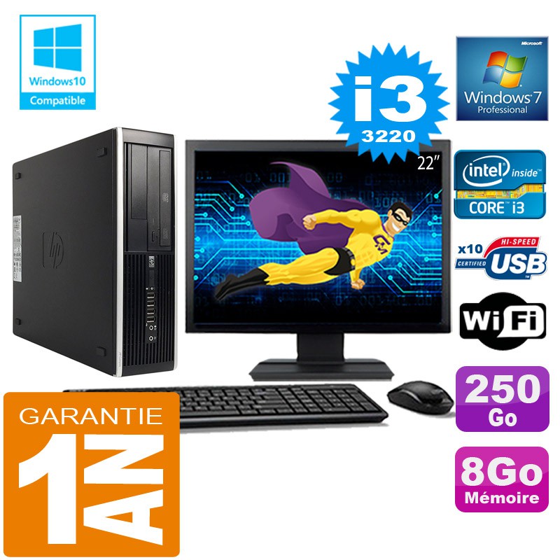 PC HP Compaq 8300 SFF Core I3-3220 Ram 8Go Disque 250 Go Wifi W7 Ecran 22"