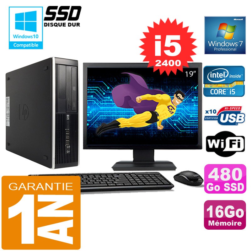 PC HP Compaq 8300 SFF Core I5-2400 Ram 16Go Disque 480 Go SSD Wifi W7 Ecran 19"