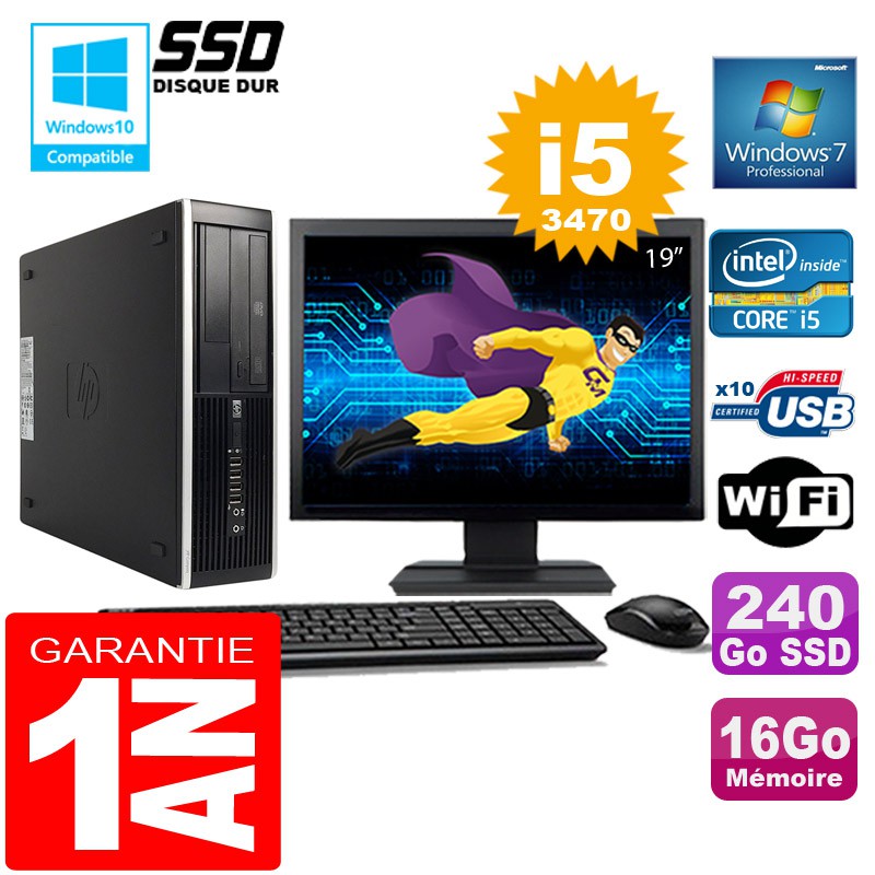 PC HP Compaq 8300 SFF Core I5-3470 Ram 16Go Disque 240 Go SSD Wifi W7 Ecran 19"