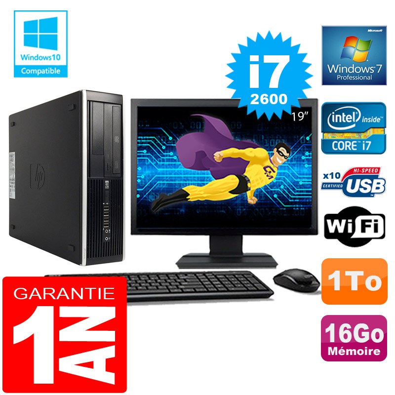 PC HP Compaq 8300 SFF Core I7-2600 Ram 16Go Disque 1 To Wifi W7 Ecran 19"
