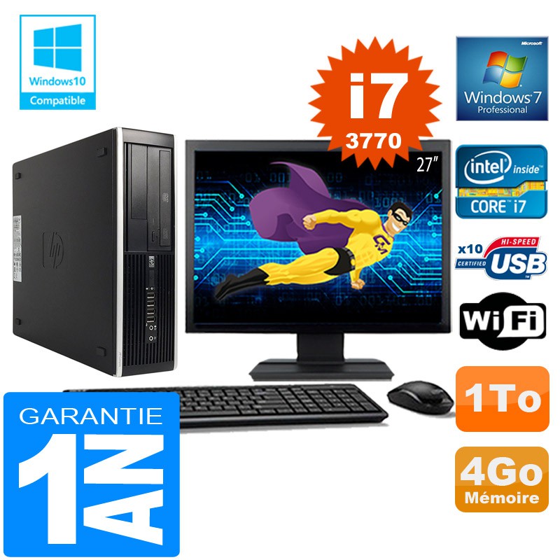 PC HP Compaq 8300 SFF Core I7-3770 Ram 4Go Disque 1 To Wifi W7 Ecran 27"