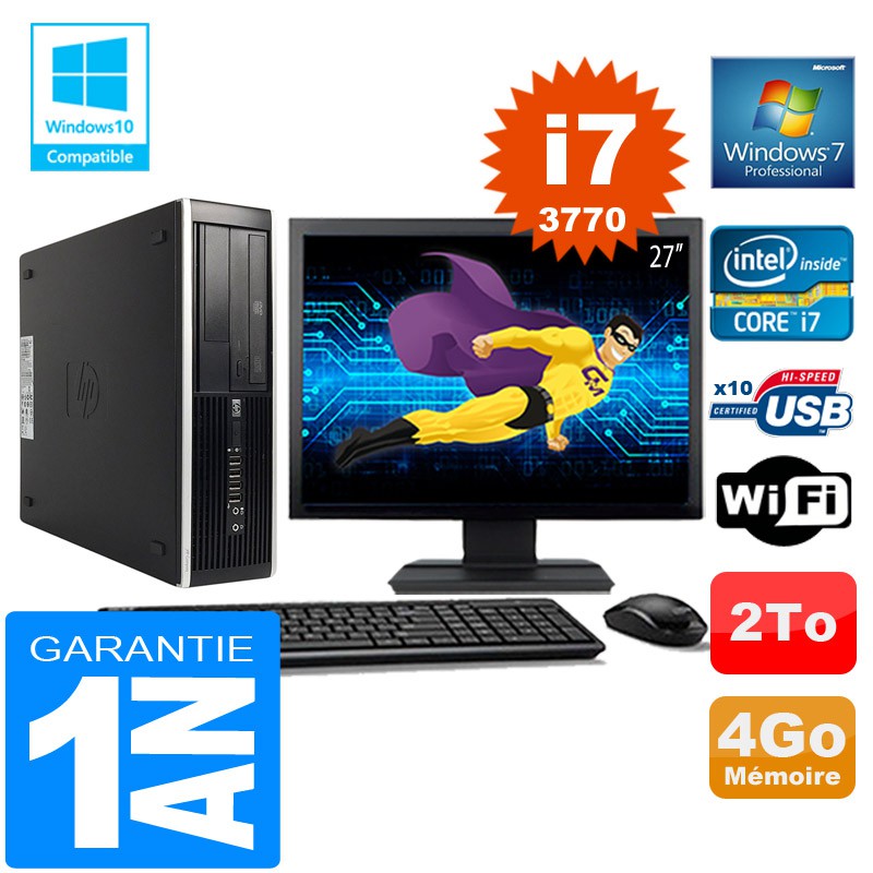 PC HP Compaq 8300 SFF Core I7-3770 Ram 4Go Disque 2 To Wifi W7 Ecran 27"