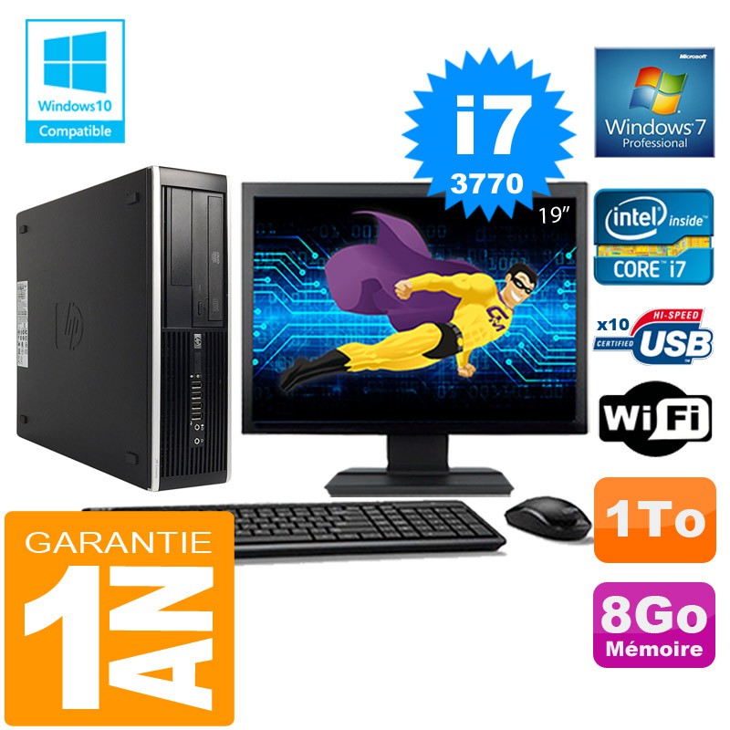 PC HP Compaq 8300 SFF Core I7-3770 Ram 8Go Disque 1 To Wifi W7 Ecran 19"