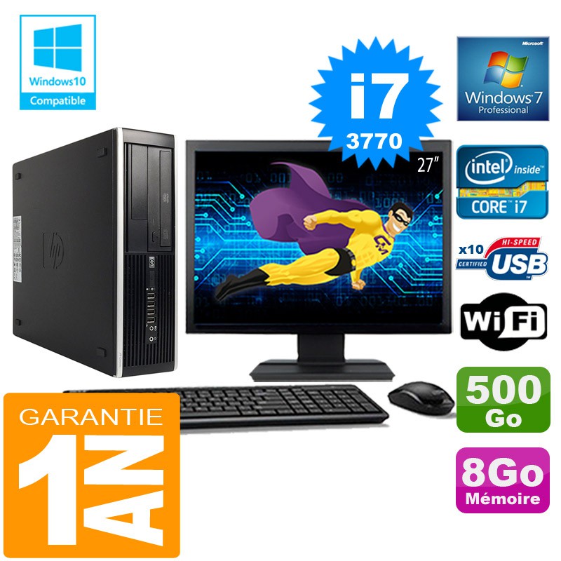 PC HP Compaq 8300 SFF Core I7-3770 Ram 8Go Disque 500 Go Wifi W7 Ecran 27"