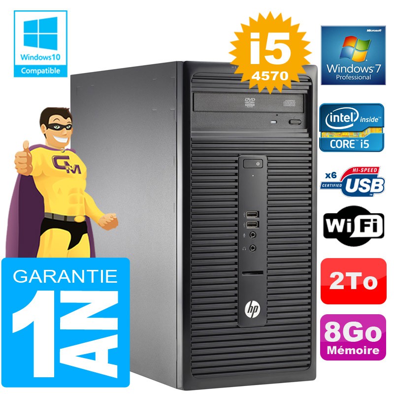 PC Micro Tour HP 280 G1 - Intel® Core™ I5 4570 3.2 GHz - 4 Coeurs - Cache 6 Mo - RAM 8Go DDR3 - Disque dur 2To SATA - Graveur DVD - Clé WIFI USB - Windows 7 Pro - Garantie = 12 mois