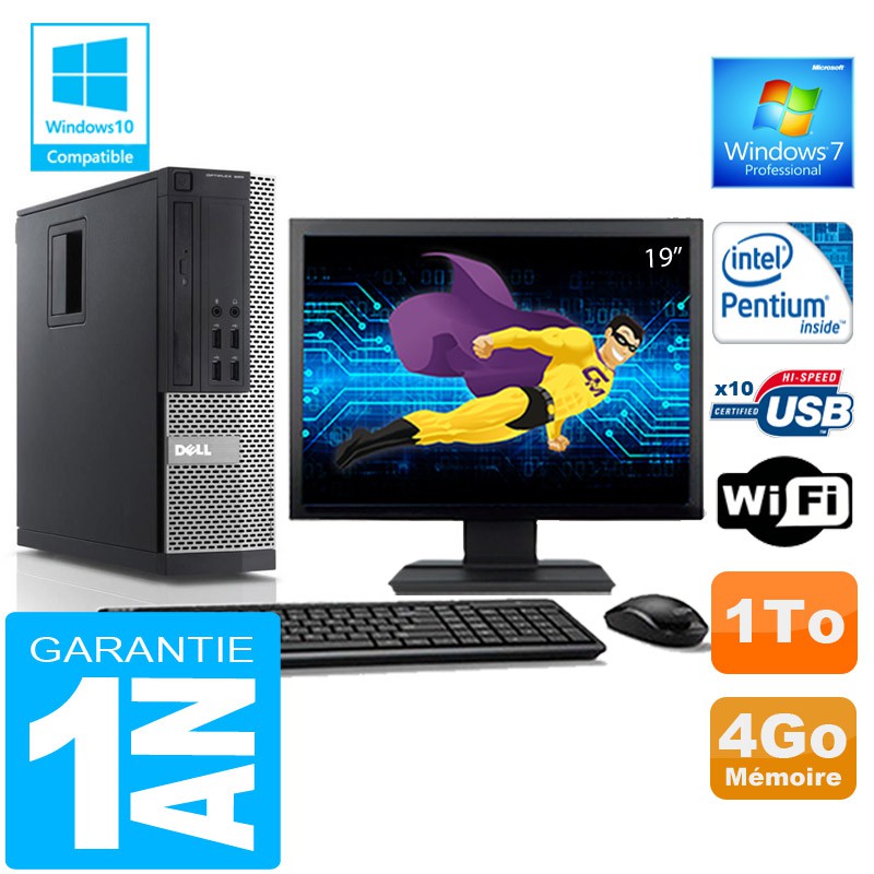 PC DELL 990 SFF Intel G840 Ram 4Go Disque 1 To Wifi W7 Ecran 19"