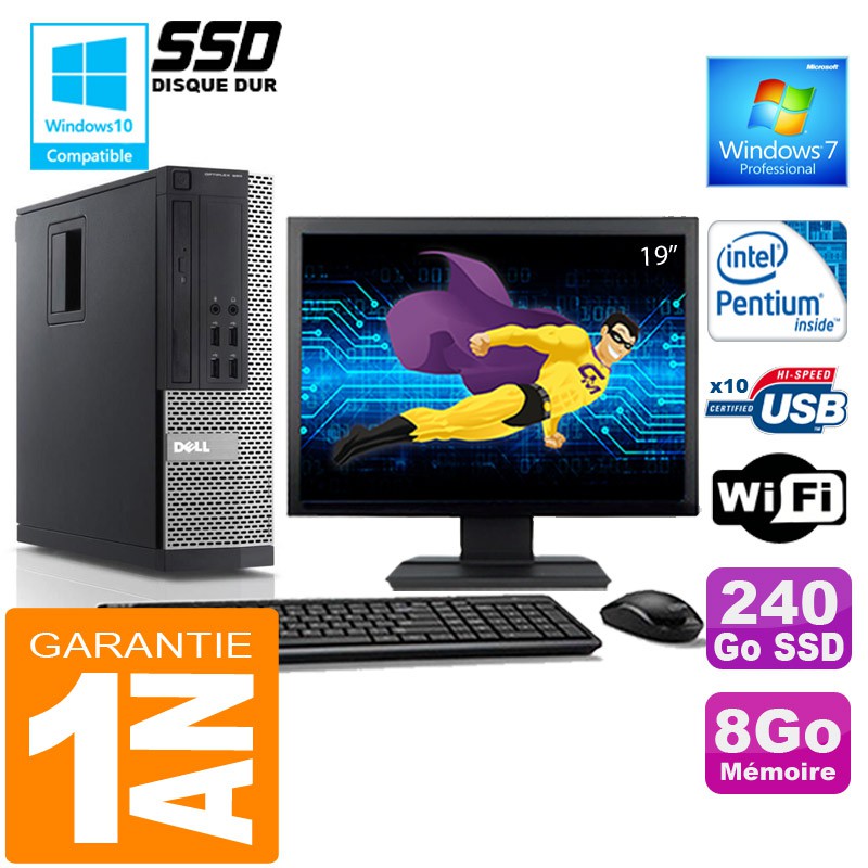 PC DELL 990 SFF Intel G840 Ram 8Go Disque 240 Go SSD Wifi W7 Ecran 19"