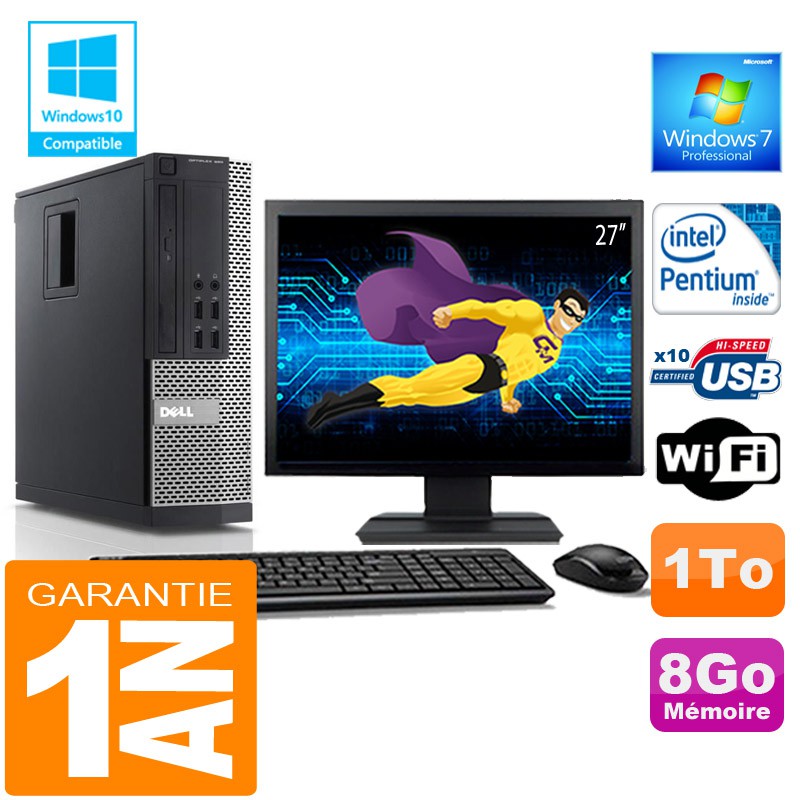 PC DELL 990 SFF Intel G840 Ram 8Go Disque 1 To Wifi W7 Ecran 27"