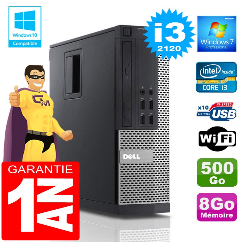 PC DELL 990 SFF - Intel® Core i3-2120 3,3Ghz (3 Mo de cache) - 8Go DDR3 - Disque Dur 500Go - Graveur DVD - Clé WIFI USB - Windows 7 Pro - Garantie = 1 an.