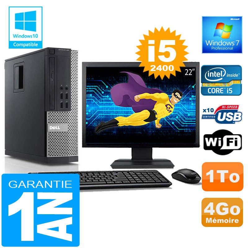 PC DELL 990 SFF Core I5-2400 Ram 4Go Disque 1 To Wifi W7 Ecran 22"