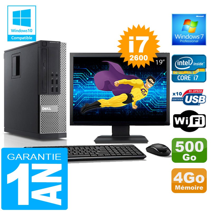 PC DELL 990 SFF Core I7-2600 Ram 4Go Disque 500 Go Wifi W7 Ecran 19"