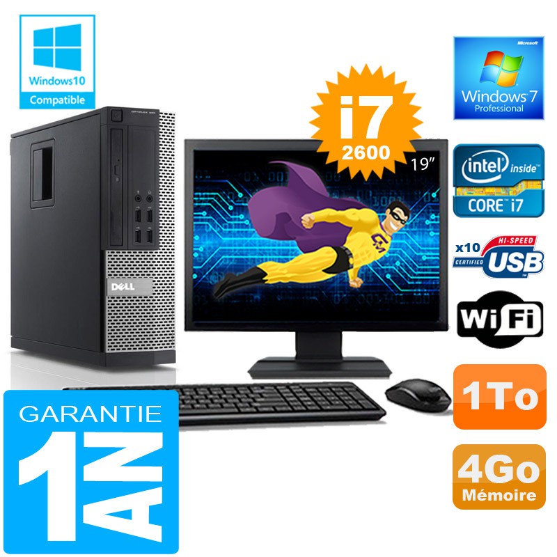 PC DELL 990 SFF Core I7-2600 Ram 4Go Disque 1 To Wifi W7 Ecran 19"
