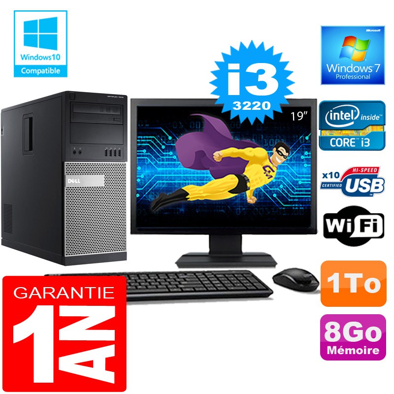 PC Tour DELL 7010 Core I3-3220 Ram 8Go Disque 1 To Wifi W7 Ecran 19"