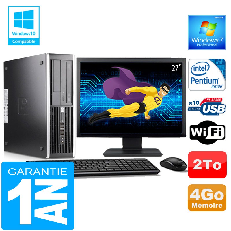 PC HP Compaq 6000 Pro SFF Intel E6300 Ram 4Go Disque 2 To Wifi W7 Ecran 27"