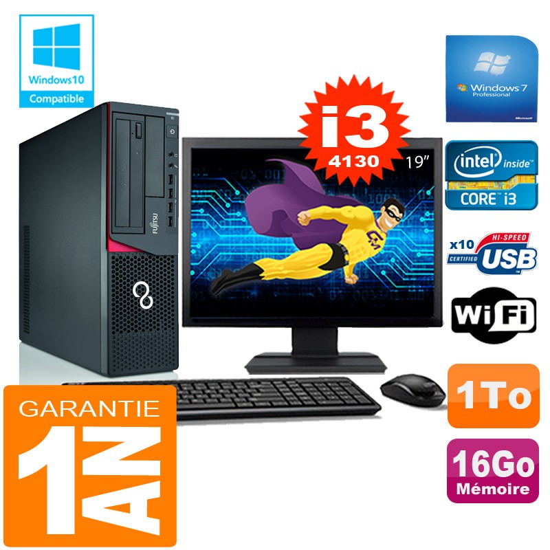 PC Fujitsu Esprimo E720 E85+ SFF I3-4130 RAM 16 Go Disque 1 To Wifi W7 Ecran 19"