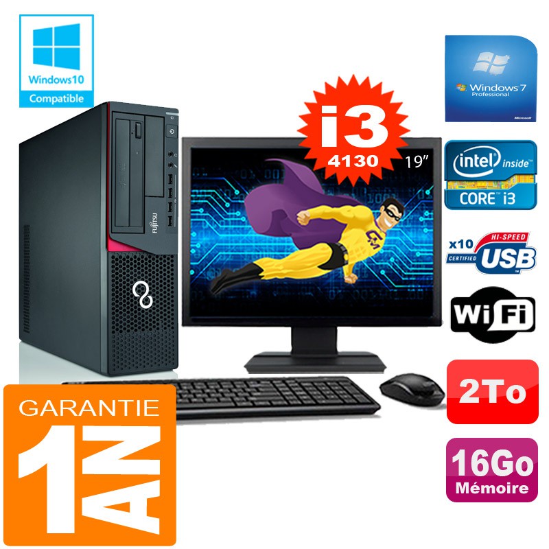 PC Fujitsu Esprimo E720 E85+ SFF I3-4130 RAM 16Go Disque 2 To Wifi W7 Ecran 19"