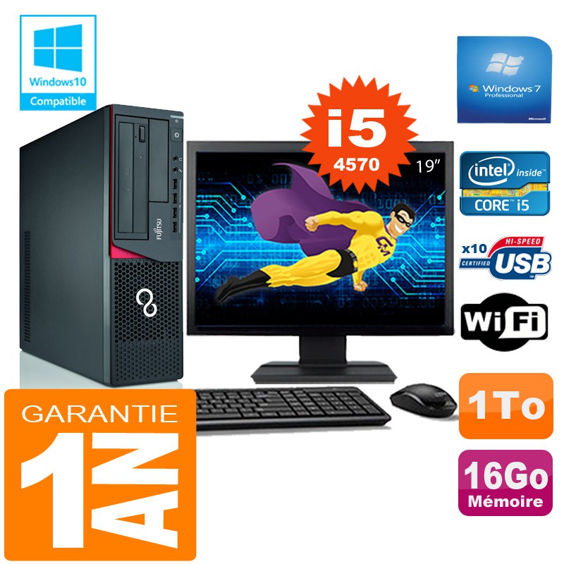 PC Fujitsu Esprimo E720 E85+ SFF Core I5-4570 16Go Disque 1 To Wifi W7 Ecran 19"