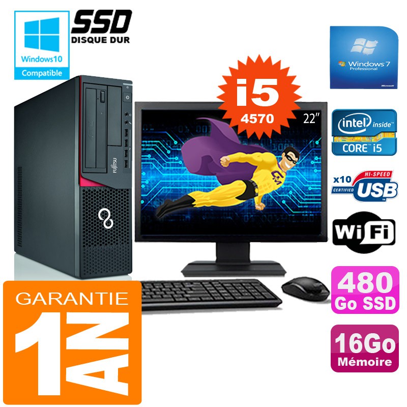 PC Fujitsu Esprimo E720 E85+ SFF I5-4570 16Go Disque 480Go SSD Wifi W7 Ecran 22"