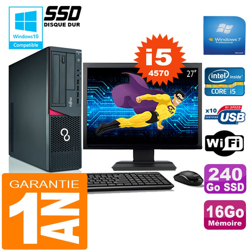 PC Fujitsu Esprimo E720 E85+ SFF I5-4570 16Go Disque 240Go SSD Wifi W7 Ecran 27"