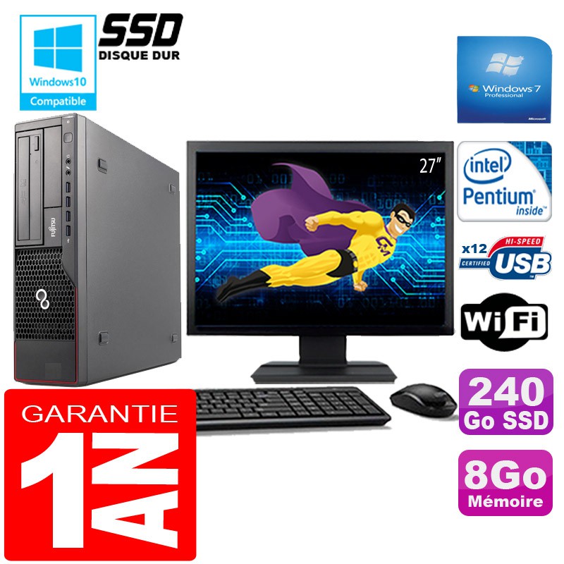 PC Fujitsu Esprimo E700 E90+ SFF G840 8Go Disque 240 Go SSD Wifi W7 Ecran 27"