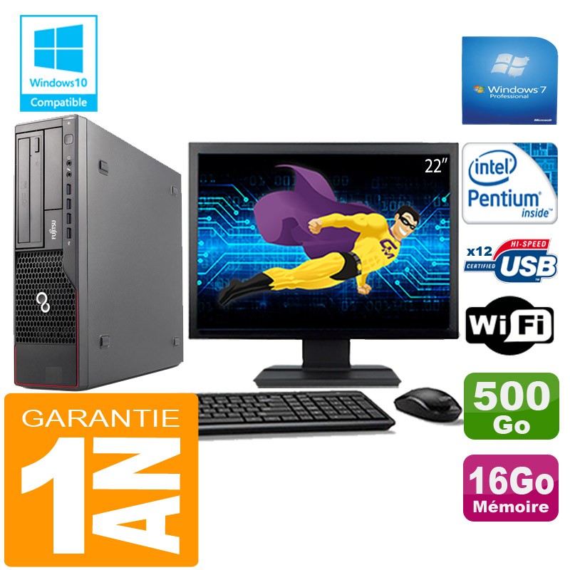 PC Fujitsu Esprimo E700 E90+ SFF Intel G840 16Go Disque 500 Go Wifi W7 Ecran 22"