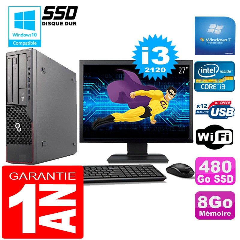 PC Fujitsu Esprimo E700 E90+ SFF - Intel Core I3-2120 3,3Ghz - 8Go DDR3 - Disque Dur 480 Go SSD - Graveur DVD - Clé WIFI USB - Windows 7 Pro - Pack Clavier + Souris + Ecran 27" ( Marque et modéles selon arrivages) - Garantie = 1 an.