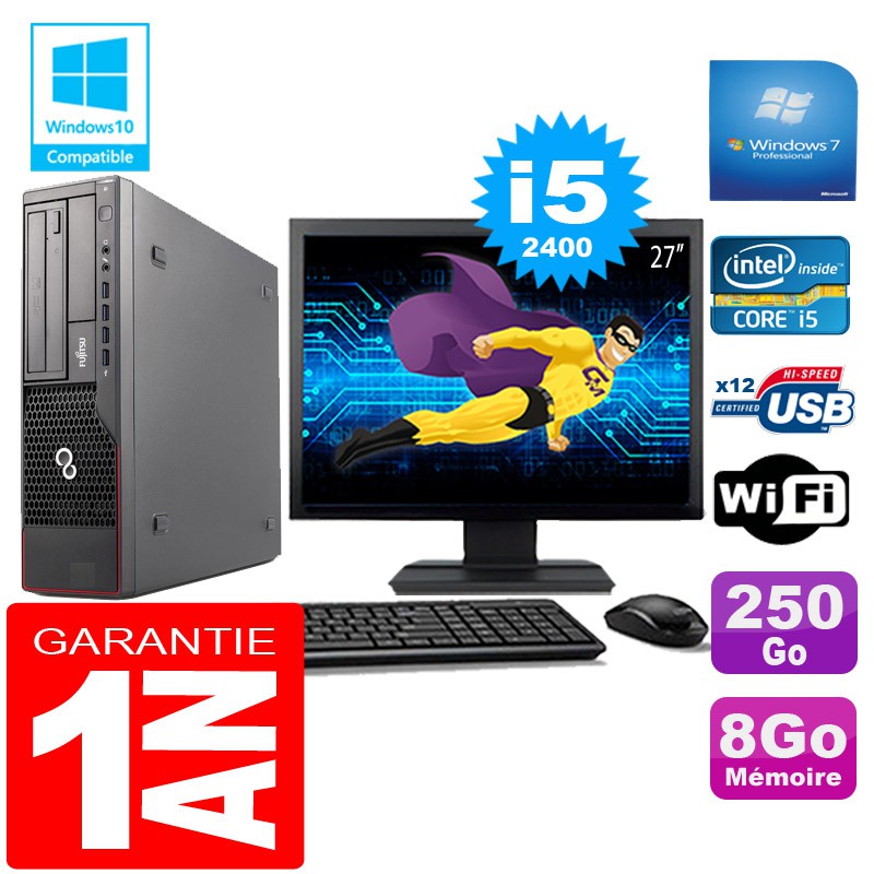 PC Fujitsu Esprimo E700 E90+ SFF Core I5-2400 8Go Disque 250Go Wifi W7 Ecran 27"