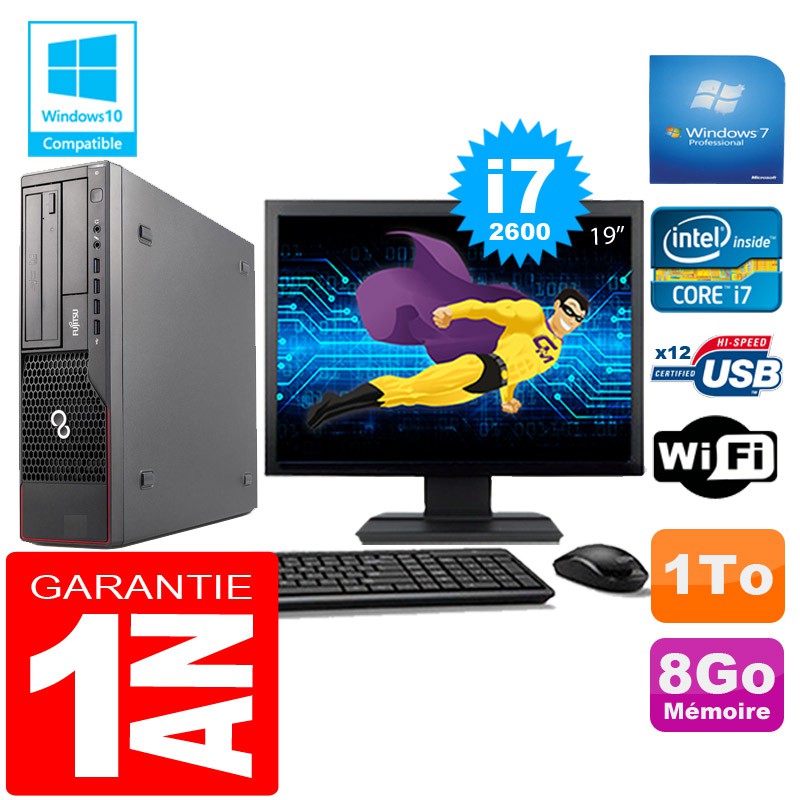 PC Fujitsu Esprimo E700 E90+ SFF - Intel Core I7-2600 3,4Ghz - 8Go DDR3 - Disque Dur 1To - Graveur DVD - Clé WIFI USB - Windows 7 Pro - Pack Clavier + Souris + Ecran 19" ( Marque et modéles selon arrivages) - Garantie = 1 an.