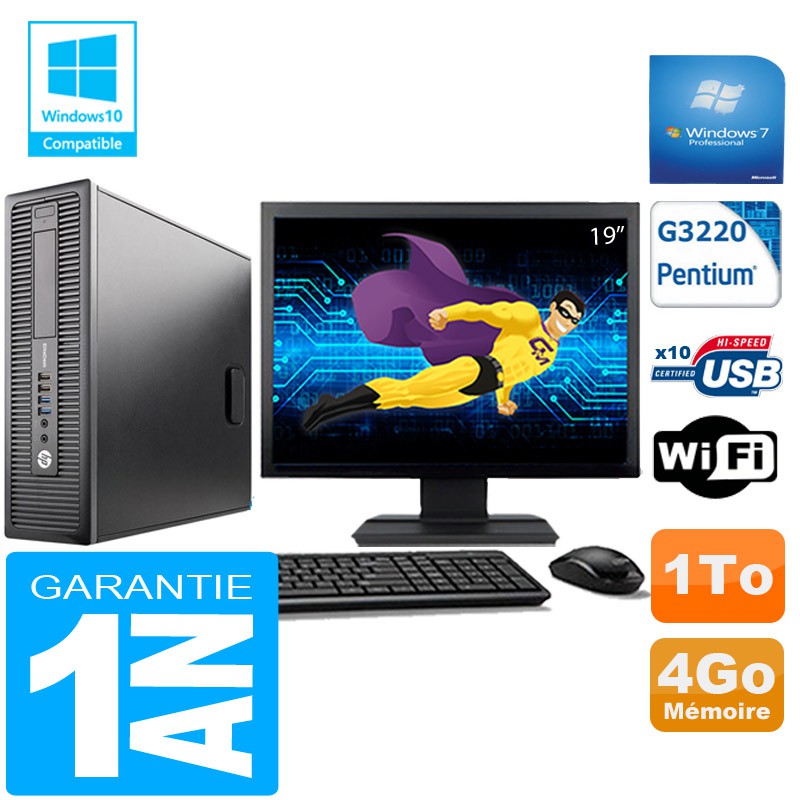 PC HP EliteDesk 800 G1 SFF Intel G3220 4 Go Disque 1 To Wifi W7 Ecran 19"